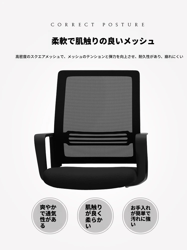 通気性抜群のメッシュオフィスチェア|回転昇降機能付き|麻雀やゲームに最適|快適な会議室用椅子|長時間の作業も楽々サポート!