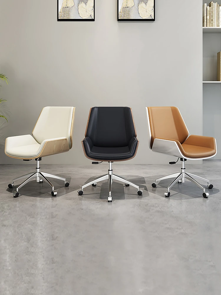 快適な座り心地を追求したエルゴノミクスデザインのオフィスチェア。長時間の作業や学習に最適なレザー製の会議椅子。家庭でもオフィスでも使える、スタイリッシュな弓形チェア!