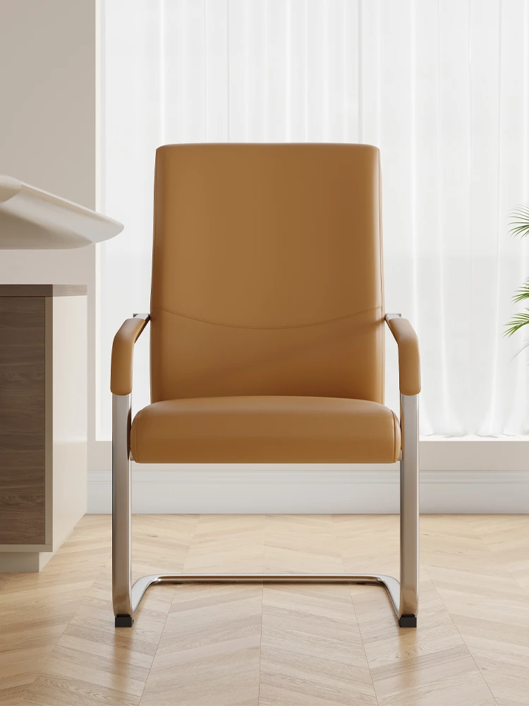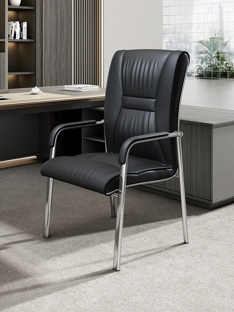 シンプルでモダンなデザインのオフィス用アームチェア - 背もたれ付きの弓形レザー椅子。会議室や麻雀室に最適!快適な座り心地で、ビジネスシーンをよりスタイリッシュに演出します。