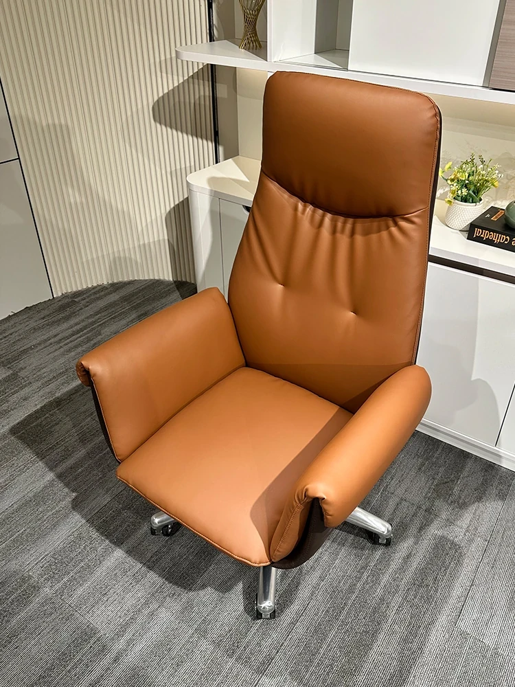 森菲亚高級ビジネスオフィスチェア - リクライニング可能な背もたれ付き、快適なレザー素材を使用した昇降式回転チェア。会議や自宅での使用に最適な大班椅。あなたの仕事空間をスタイリッシュに演出します!