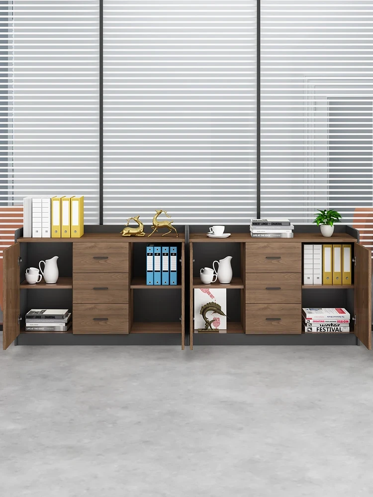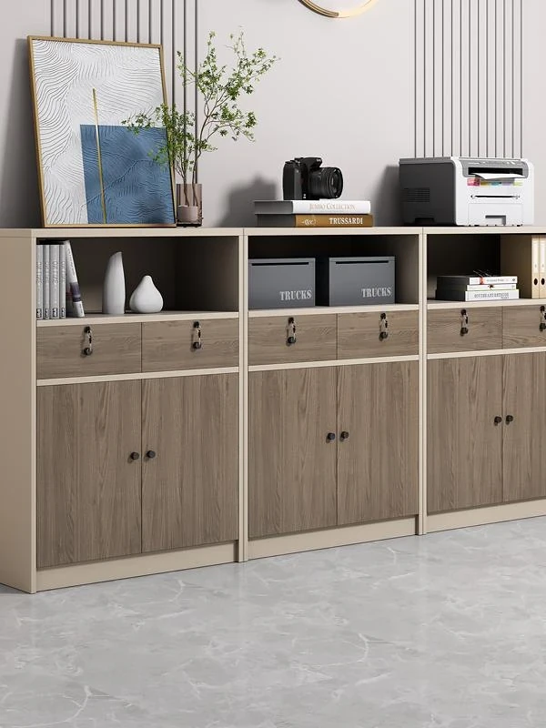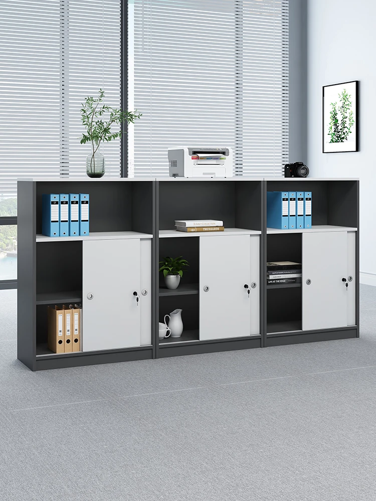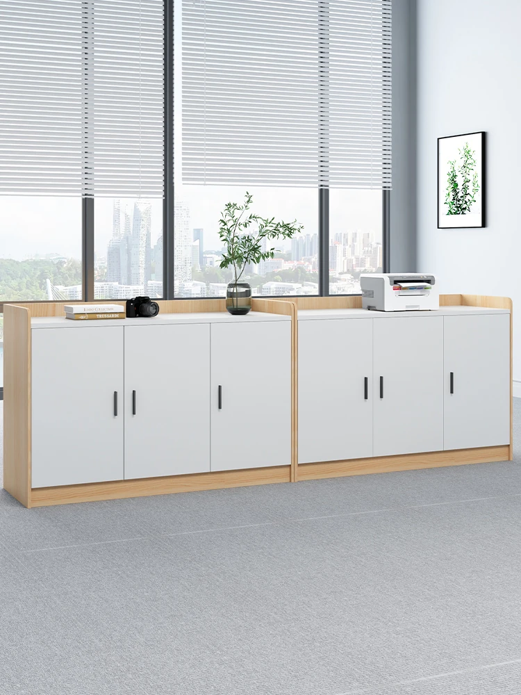 Stylish Office Partition Cabinet with Sliding Doors - Versatile Low Storage Unit for Files and Printers - Wooden Combination File Cabinet for Organized Workspace