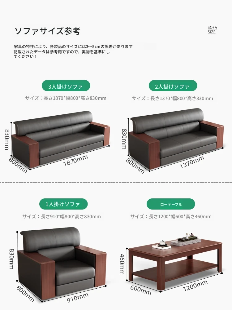 3+2+1【ハイエンド版 輸入牛革】+ロングコーヒーテーブル