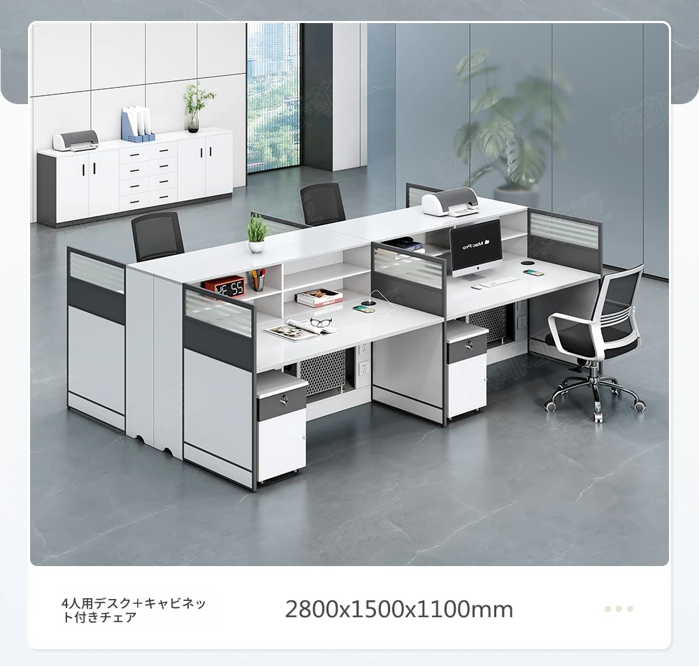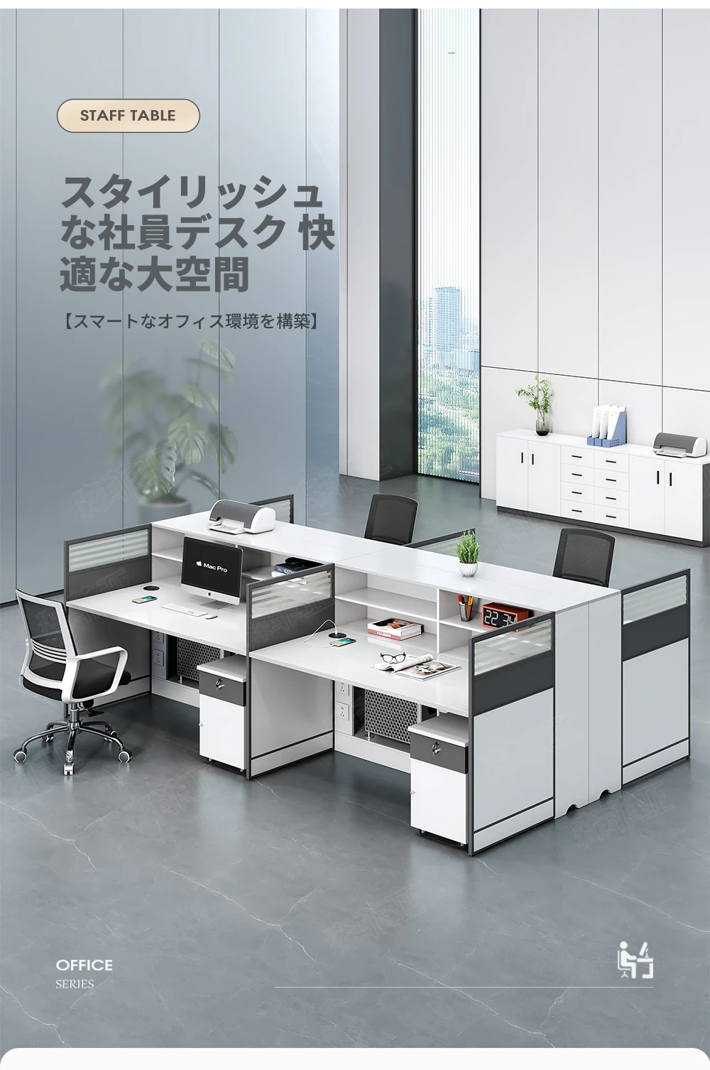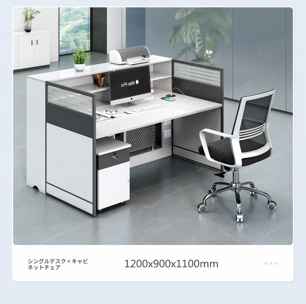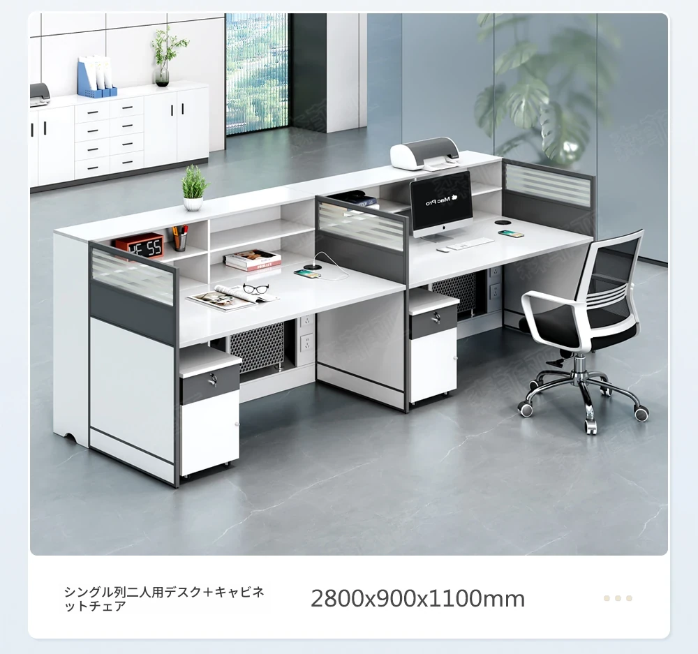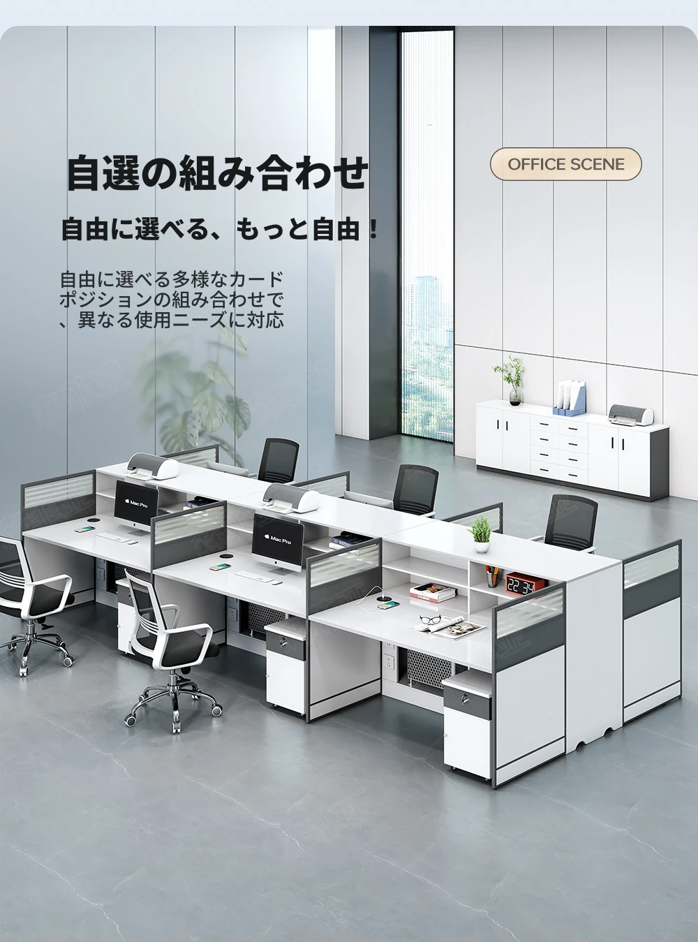 シンプルでモダンなオフィスデスク&チェアセット - 社員の快適な作業空間を実現!仕切り付きのデザインでプライバシーを保ちながら、効率的な業務をサポート。洗練されたスタイルで、財務デスクにも最適です!