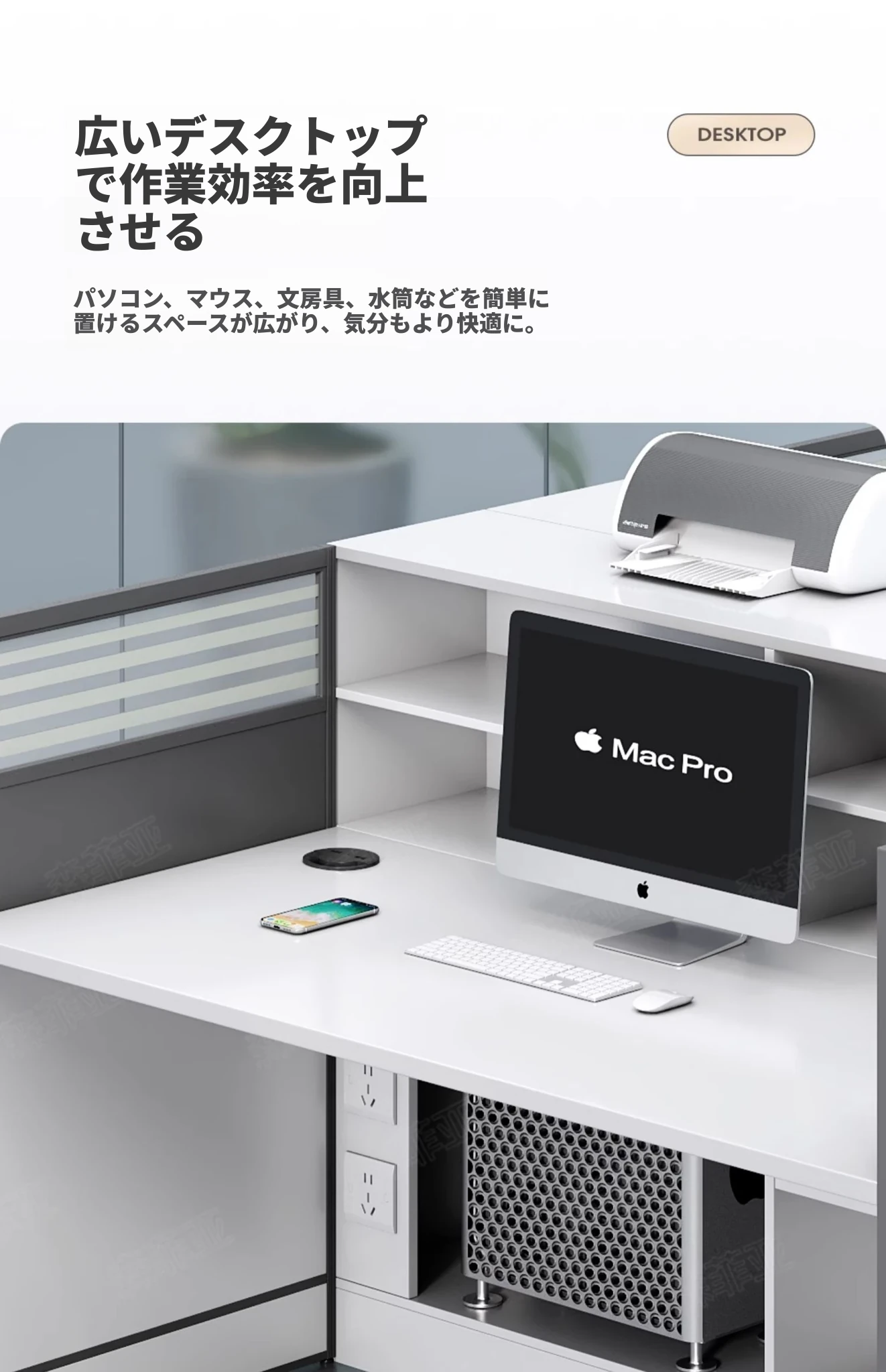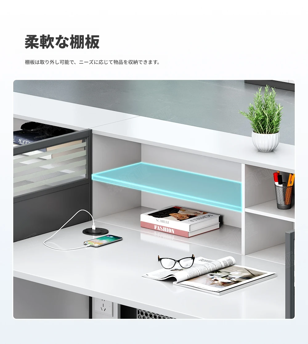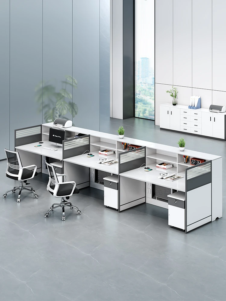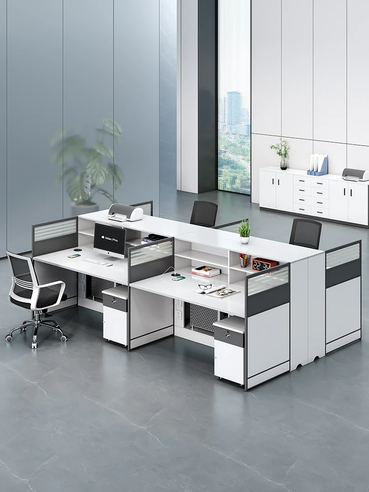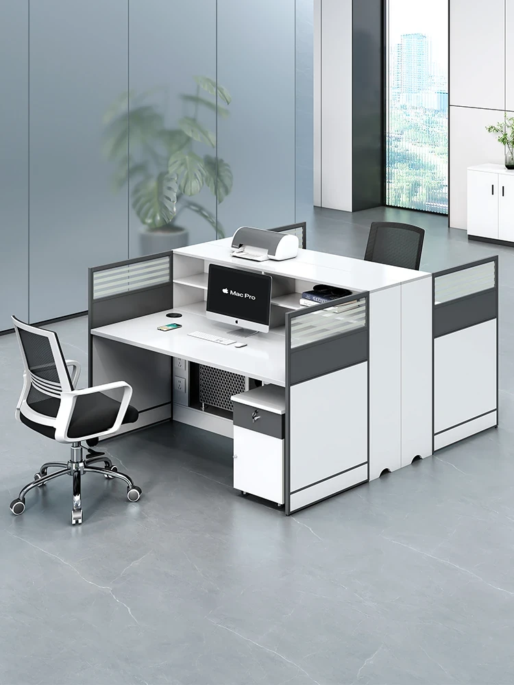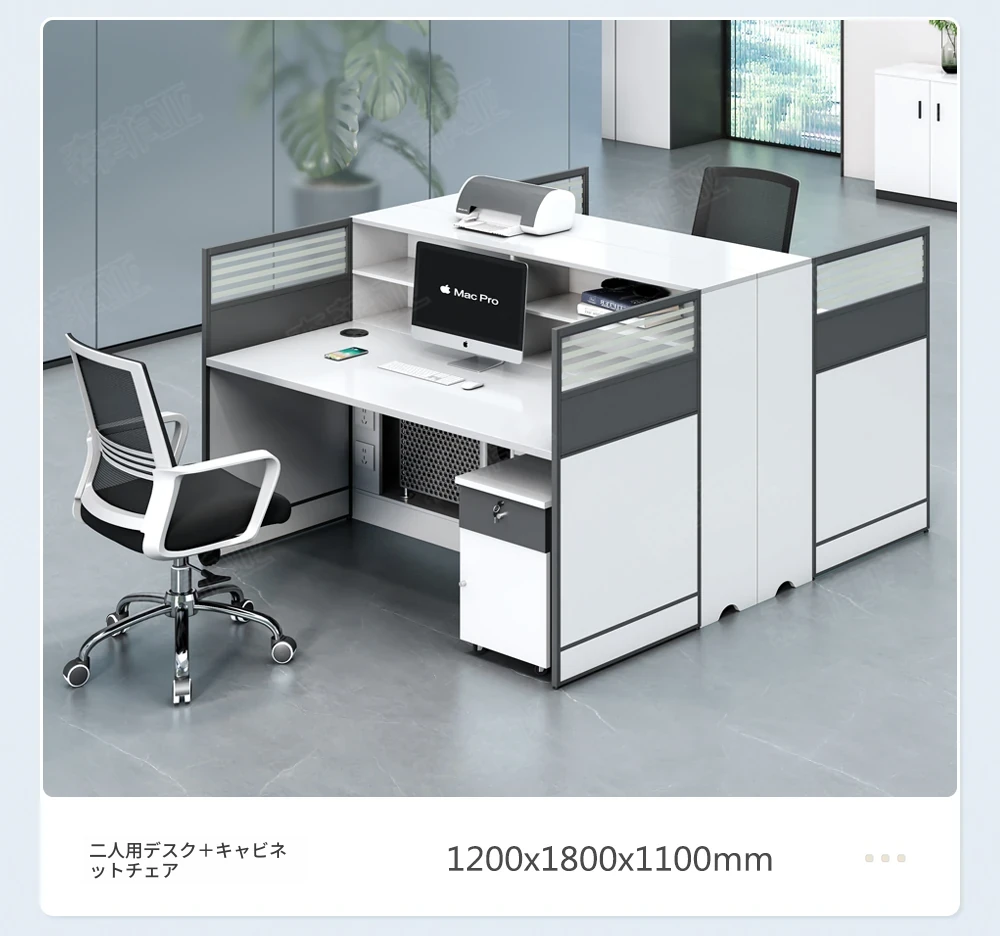 シンプルでモダンなオフィスデスク&チェアセット - 社員の快適な作業空間を実現!仕切り付きのデザインでプライバシーを保ちながら、効率的な業務をサポート。洗練されたスタイルで、財務デスクにも最適です!