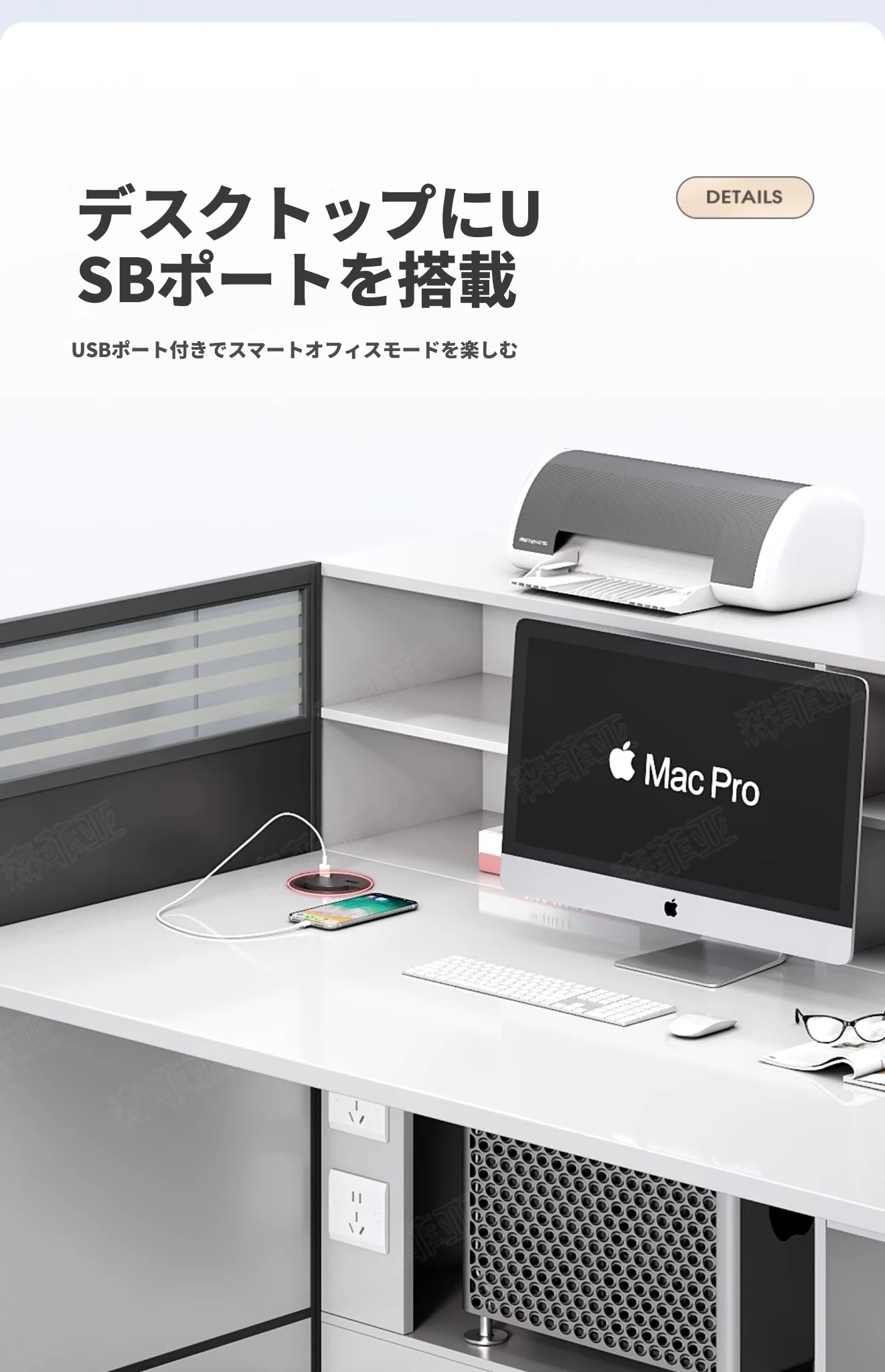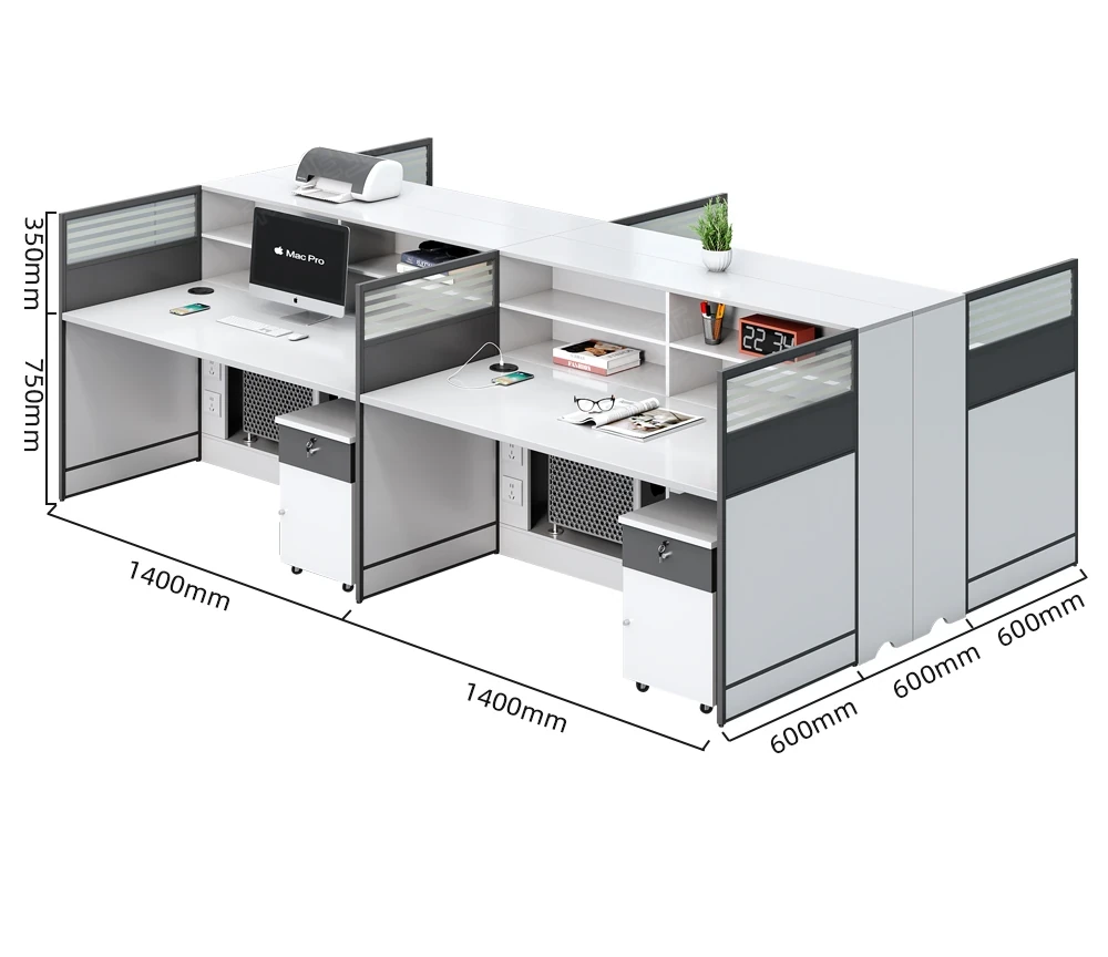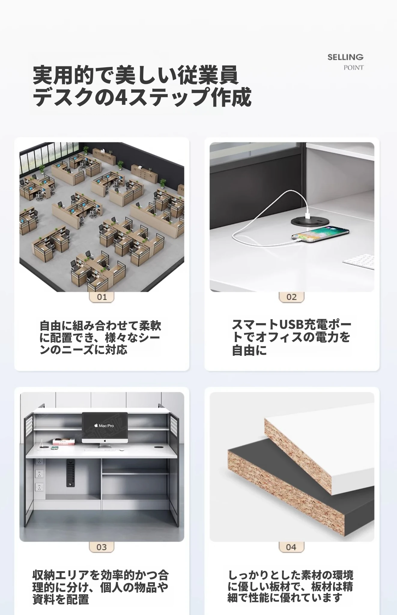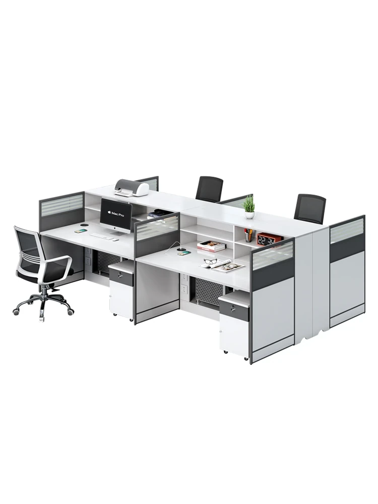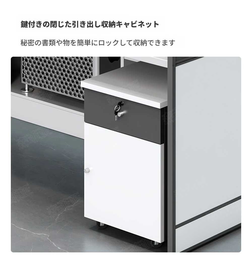シンプルでモダンなオフィスデスク&チェアセット - 社員の快適な作業空間を実現!仕切り付きのデザインでプライバシーを保ちながら、効率的な業務をサポート。洗練されたスタイルで、財務デスクにも最適です!