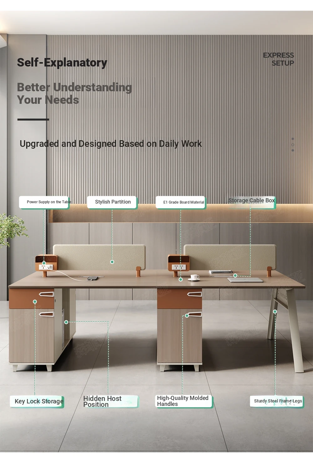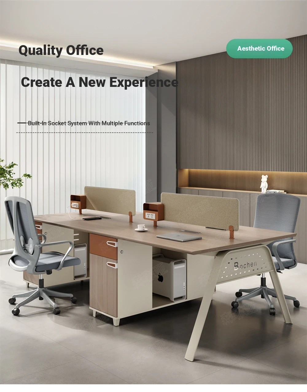 シンプルでモダンなオフィスデスク|2/4/6人用のスタイリッシュな職員デスクセット|快適な作業環境を実現!デザインと機能性を兼ね備えた最適なオフィススペースを提供します。