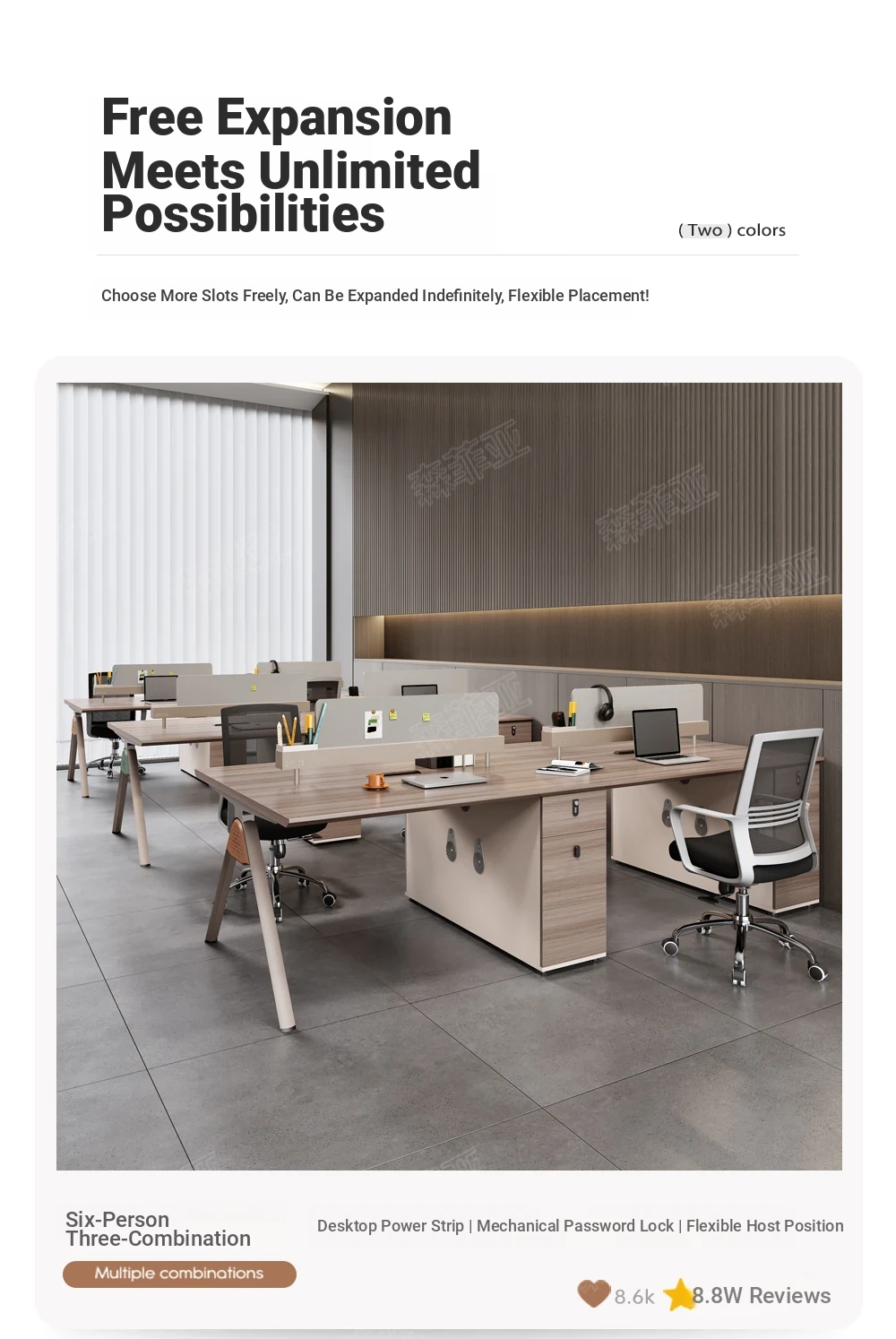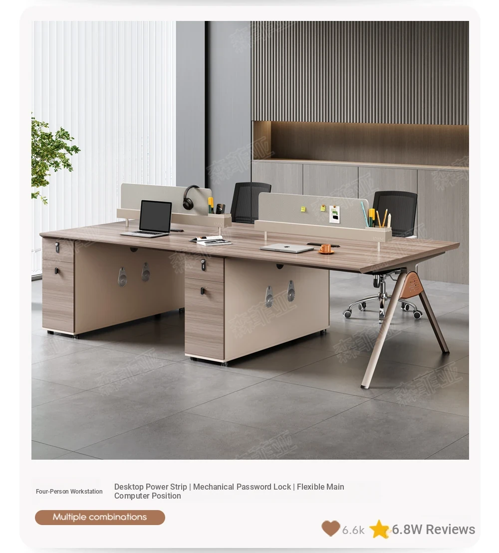 シンプルでモダンなオフィスデスクセット|2/4/6人用の職場に最適なデスク&チェアコンビネーション|効率的な作業空間を実現!
