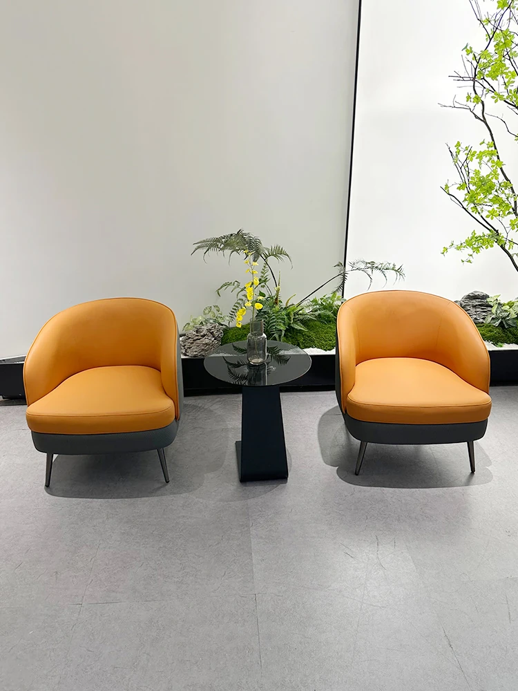 シンプルでモダンなデザインのオフィス用アームチェア - 背もたれ付きの弓形レザー椅子。会議室や麻雀室に最適!快適な座り心地で、ビジネスシーンをよりスタイリッシュに演出します。