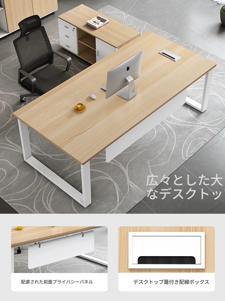 シンプルでモダンな高級オフィスデスクセット - 社長デスク&オフィスチェアのコンビネーション、大型デスクで洗練されたビジネス空間を演出!