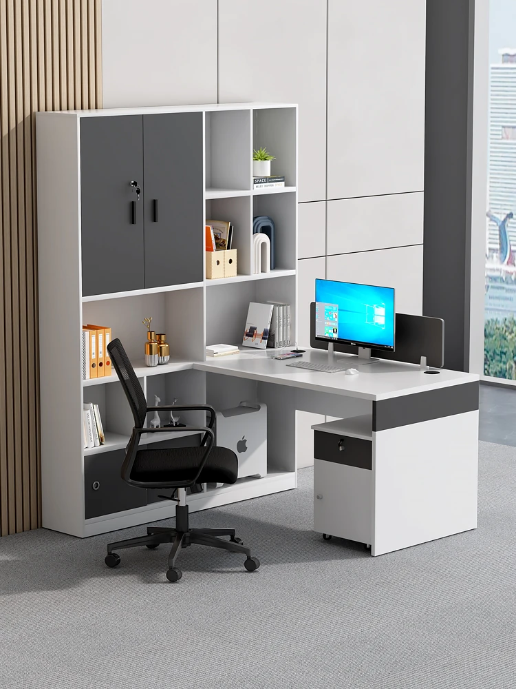 オフィスデスク&チェアセット - 財務室・会計用に最適!対面式デザインで効率的な作業環境を実現。高収納キャビネット付き、機能的でスタイリッシュなオフィス空間を演出します。